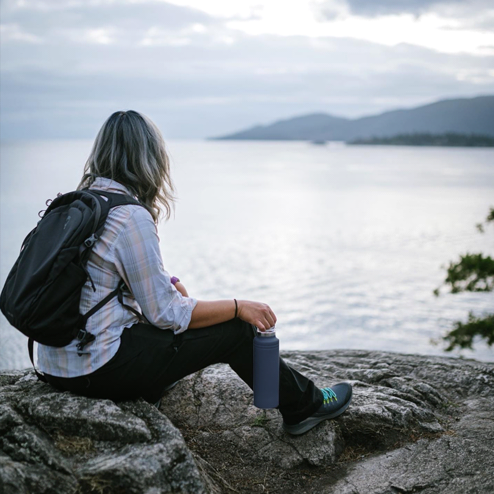 Do not miss the most trendy bottle of the year. This bottle has a durable powder spray colour. Double-wall 18/8 grade stainless steel vacuum construction with copper insulation, which allows your beverage to stay cold for 48 hours and at least 12 hours for hot beverages. Capacity 600ml.