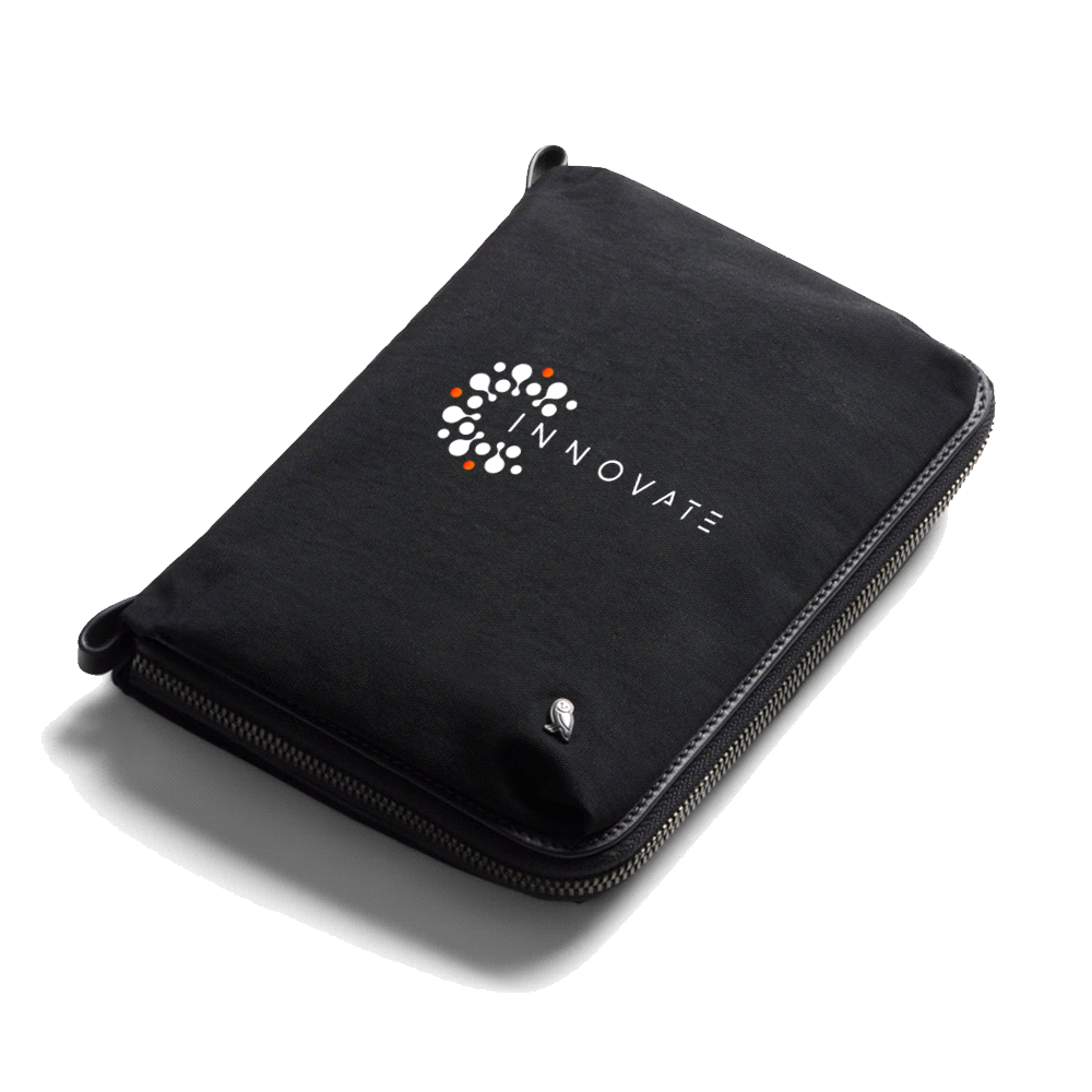 Full zip closure, Compresses down for in-bag carry, Elastic straps for cables and stationery, Large rear pocket for notebooks, passports or a power bank, Dual slip pockets for small items, Carabiner wrist strap included, Zipped internal and external pockets, Branded leather pen loop, Two attachment loops for adding a shoulder strap