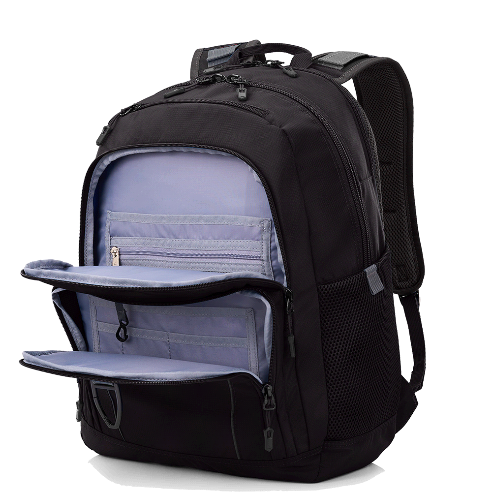 Meet Extension – the backpack that gets your grind and your gear. Featuring a padded 17” laptop compartment with a safety hammock for extra protection and a dedicated tablet pocket, it keeps your tech secure and organised. The large main compartment offers generous storage, while multiple interior pockets ensure every item has its place. The padded back panel and suspension straps deliver all day comfort, whether you’re commuting, flying or moving between meetings. The premium metal carabiner is perfect for attaching gear like a helmet, keys or extra accessories. A side pocket keeps your water bottle within easy reach and the trolley sleeve allows you to stack your bag on your suitcase for hassle-free travel.