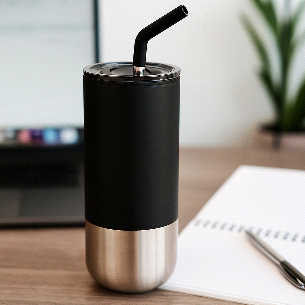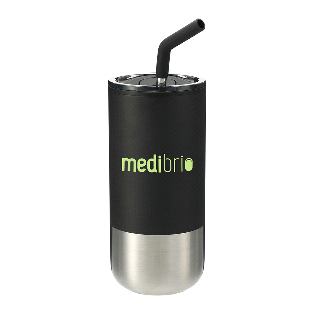 Durable double-wall construction, Spill-proof lid with slide closure to avoid messes, Insulated to provide lasting temperature control, Includes one reusable stainless steel straw with silicone safety tip, Straw is dishwasher-safe, Tumbler Hand-wash only. Presented in Kraft Giftbox.