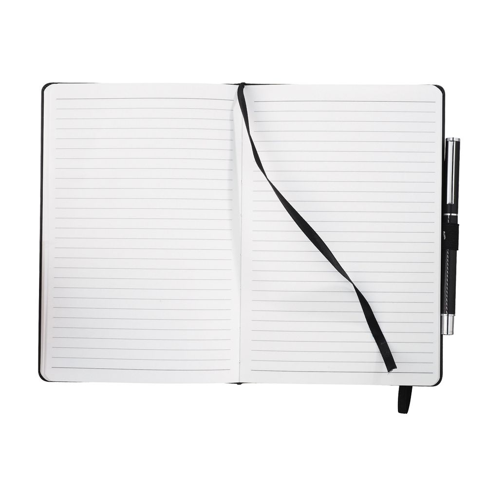 Stitched cover with matching colour ribbon page marker, built-in elastic closure and elastic pen loop. Includes 80 sheets of 100 gsm white-lined paper. Available in 2 colours.